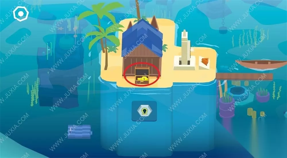 4.第四把橙色钥匙在海龟岛获得,用获得的蓝色钥匙打开海龟岛的锁,获得橙色钥匙。4.1
