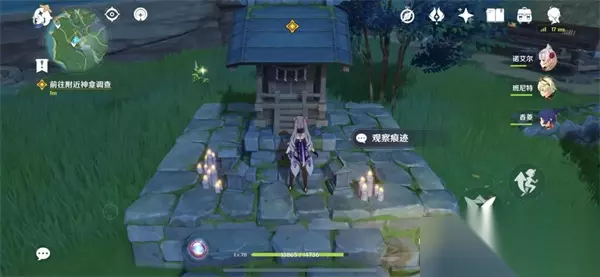 4、前往附近的神龛调查 按指引方向走,前往神龛观察痕迹