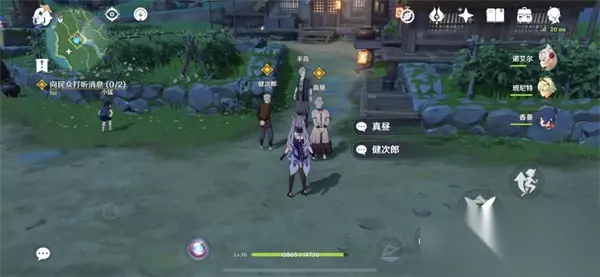 2、向民众打听消息 按指引方向走,与健次郎和真昼对话