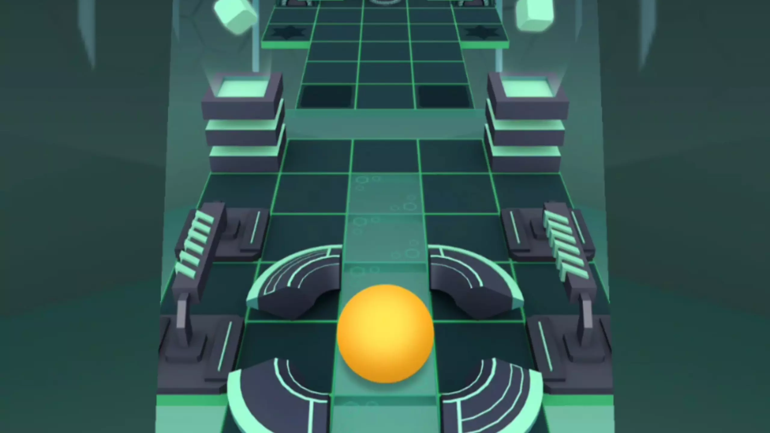这是豆包AI生成的滚动的天空自制谱关卡,呈现了充满科技感的蓝色方块关卡场景,玩家操控彩球在方块跑道上向前行进,展示了该自制谱关卡的赛道设计。