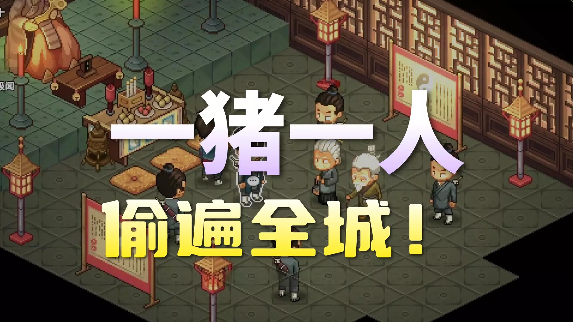 这是《大侠立志传》的游戏解说内容,解说尝试仅靠偷窃在武林生存,展示了在游戏里购买食物、树林探索、无名小村偷窃、与NPC互动等游戏过程,呈现了以盗圣玩法推进游戏的趣味内容。