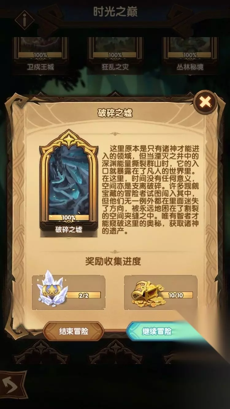 其实 我们只要保证他不转起来就行, 不开大招的狮子,哪怕无敌也就是个弱鸡, 所以这里必须要拿到种族克制的遗物, 并且着重选择加强后排伤害、攻击、暴击的遗物。 我基本火女进场两个大,狮子已经在无敌了, 而能量条还不到三分之一。 就这样,宝箱要拿全的话得重开三四次, 我是先打了蓝线拿了神装强化材料 (然而并没有什么用,还没有开神装强化), 然后重开走绿线,拿了女妖 再重开拿了剩下的金箱子。 以上就是剑与远征破碎之墟攻略了,希望对各位玩家有帮助。