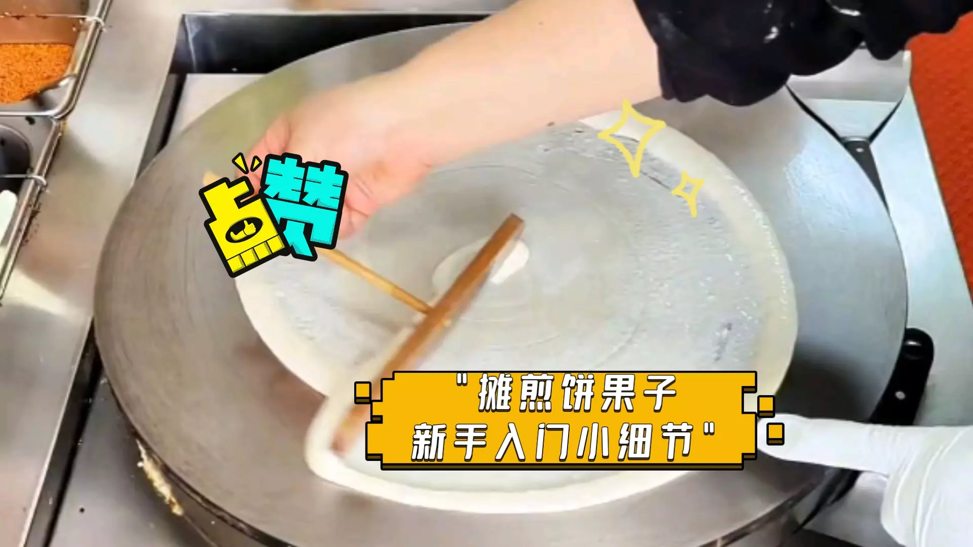 这是一则街头小吃摊煎饼的制作过程帖,展示了摊制煎饼时打鸡蛋、刷匀蛋液、撒芝麻等步骤,带你了解街头摊煎饼的制作细节。
