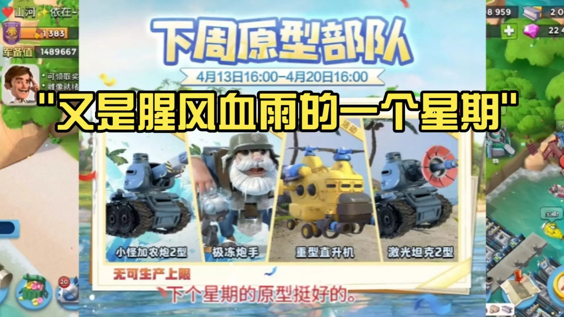 这是策略游戏《海岛奇兵》的相关内容,本周的原型部队强度很高,搭配小怪加农炮2型等原型部队,再配合激光坦克等兵种,清图效果非常好,能高效应对密集阵型的敌方基地。