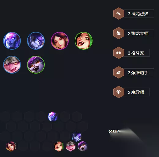 《云顶之弈》s7驯龙射手小炮阵容怎么玩?在云顶之弈手游s7赛季中,在这个全新的赛季中,很多角色和羁绊都有调整,还新增了不少新内容,很多阵容搭配也有了新的变化,下面为大家带来的是云顶之弈s7驯龙射手小炮阵容玩法攻略,一起来看看吧。 云顶之弈s7驯龙射手小炮阵容攻略 1、阵容构成 崔斯塔娜+艾达丝+璐璐+库奇+金克斯+锤石+娑娜