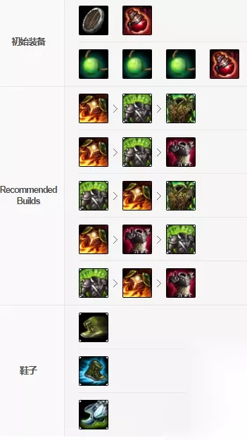 出门装: 祖安狂人出门装选择多兰盾加生命药水就可以了,前期主要以赖线发育为主,多兰盾的回血很不错。 核心装备: 根据自己对线英雄选择抗性装备。如果对线的物理伤害英雄第一件推荐出日炎斗篷,可以减少自己受到的伤害同时还能利用日炎的灼烧效果加快清兵与加强对敌人造成的伤害;如果对线的是法术类英雄那么第一件就出振奋盔甲,增加自己的魔法抗性还能提升回血能力。第三件就出狂徒铠甲,有了前两件装备加上狂徒的血量蒙多很容易就可以达到3000血量,这样蒙多的大招加上狂徒之心的回血能力将是非常强大的。 鞋子方面: 根据对线英雄或者敌人的整体阵容选择出布甲鞋或者水银鞋就可以了。 英雄联盟手游蒙多技能