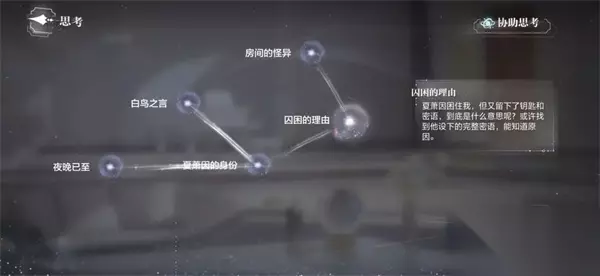 6、思考,得结论【囚困的理由】。点门口的【寻找密语】并【离开】,即可达成成功结局【门后密语】。