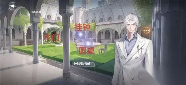 4、前往房间三。【观察】门口、水晶球、钟表。点【拨动指针】,思考得结论【夏萧因的身份】。