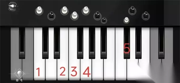 5、点击钢琴,先点思考,得到【位置与颜色】,按照白棋顺序弹琴。