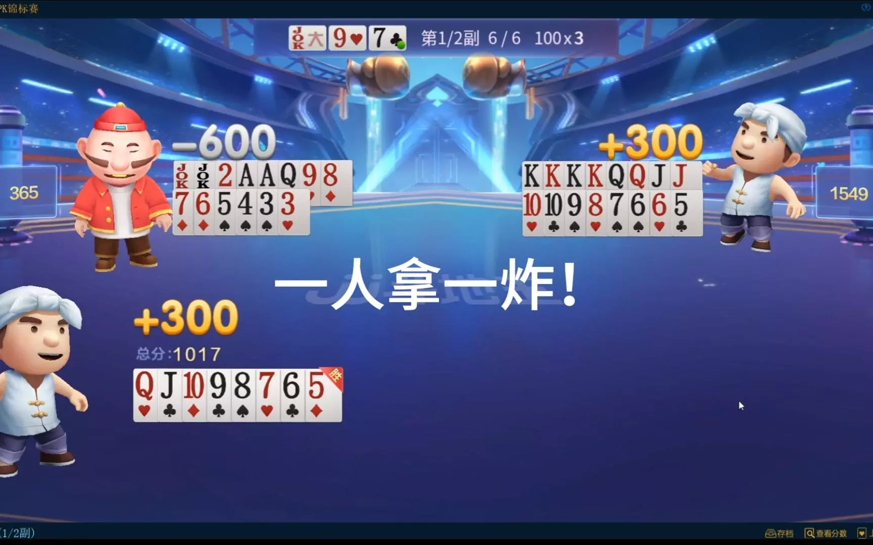 三岁玩牌破釜沉舟四个3的大胆一炸后期残局细腻的行牌为自己争取到了胜利!