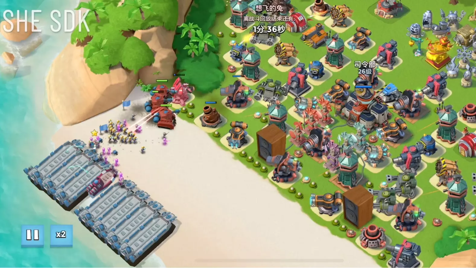这是《海岛奇兵》的战斗内容,展示了用步医冰妹搭配激光妹的兵种组合,实现低本平推高本的战斗过程,该组合是低本玩家攻克高本的实用打法。