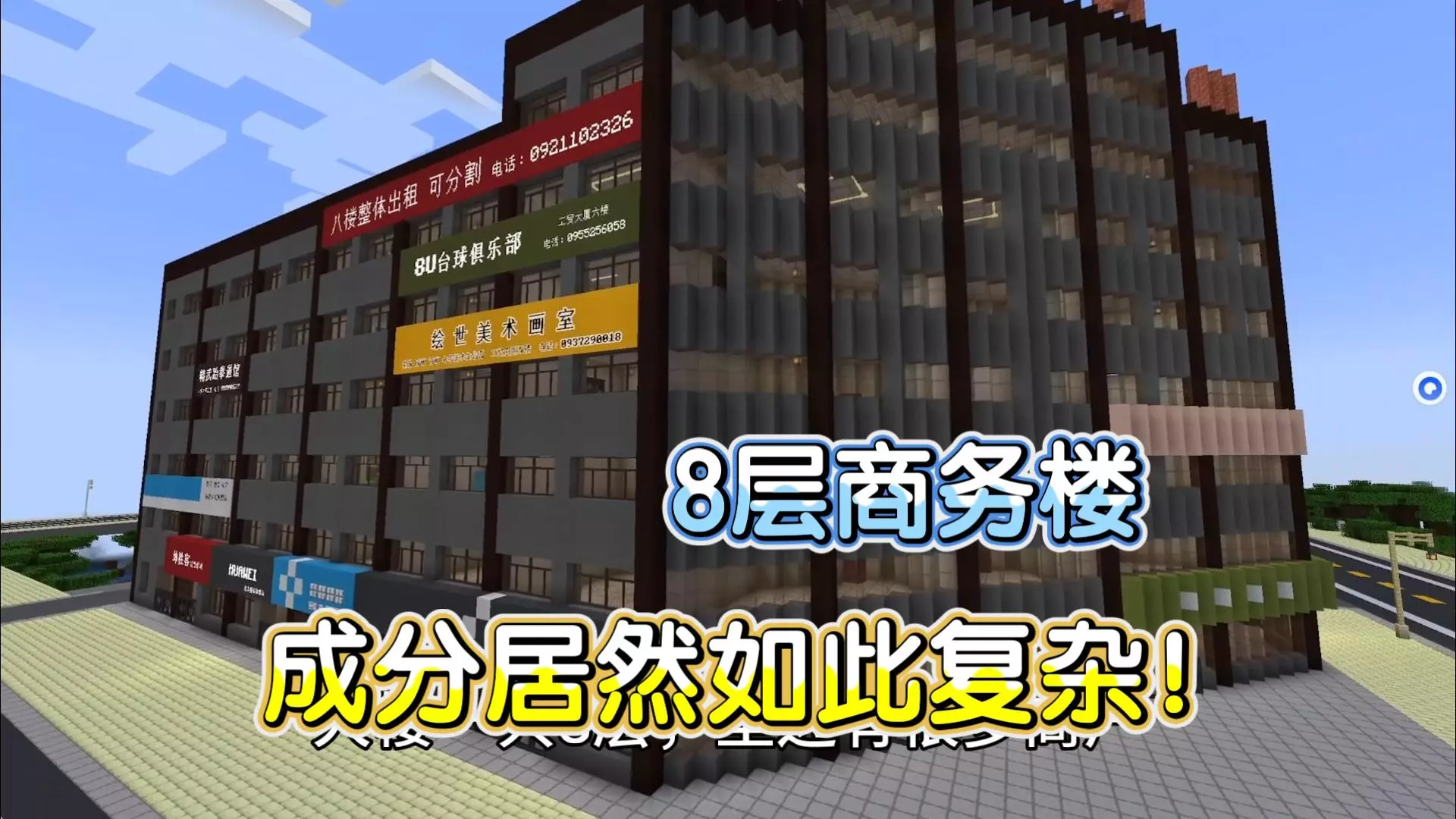 MC建筑-成分非常复杂的商务楼 临街商铺有超市、数码专卖店、炸鸡店、服装店 楼内有辅导班、网吧、台球室,一条龙一应俱全