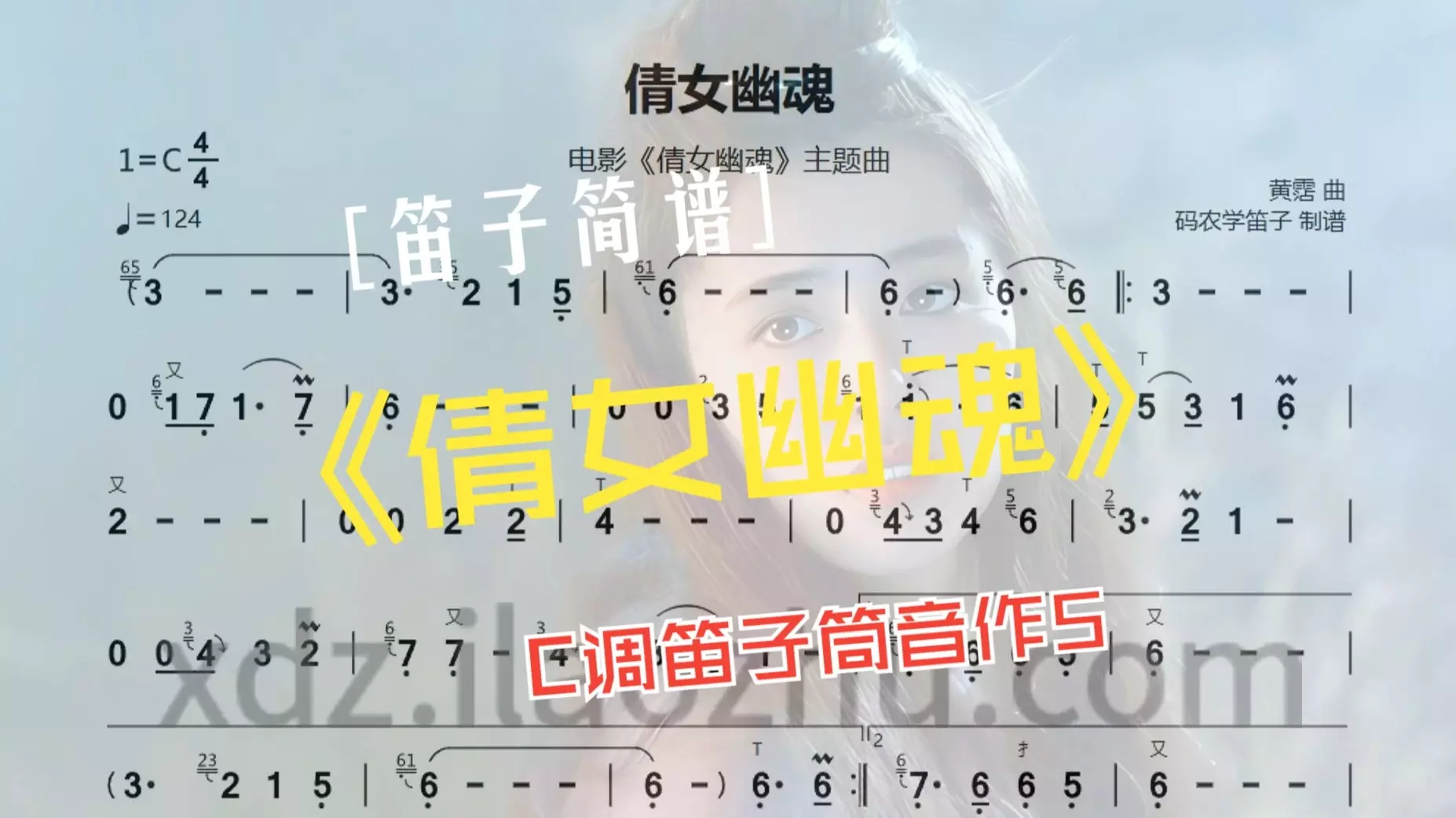 这是一则民乐演奏帖,展示了用笛子吹奏经典曲目《倩女幽魂》的过程,同时同步呈现对应曲谱,为笛子爱好者提供了直观的演奏参考。