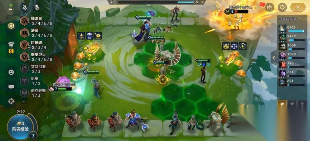 阵容搭配 推荐配置6神谕者、2巨神峰,如果有机会招募到五费的阿狸,便可进一步搭配2法师和3艾欧尼亚。 值得一提的是,神谕者阵容中拥有以绪塔尔为英雄,如果你手中有增加最大生命值的木元素格,可以考虑加入妮蔻。因为战争罡风加里奥的伤害与最大生命值密切相关,加入木元素格后,每个回合增加的40点生命值,不仅能让加里奥的伤害进一步提升,还能显著增强他的生存能力。