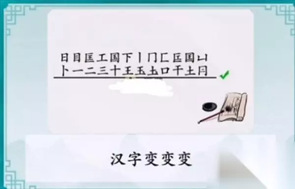 关卡:国——找出20个字。 国这个字相信很多玩家都非常的了解,笔画越多的字越容易找,首先我们可以看到【一、二、 三、干】; 后面正常发挥,可以找到【王、土、玉、十】; 经常玩这款游戏的玩家应该可以发现的:【冂、口、匚、匡】; 很多玩家都卡在了这里,其实答案很简单【日、冃、目、工】; 最后的四个字答案【下、国、卜、丨】。