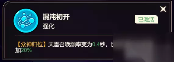 混沌初开: 【众神归位】天雷召唤频率变为0.4秒,造成的魔法伤害增加20%
