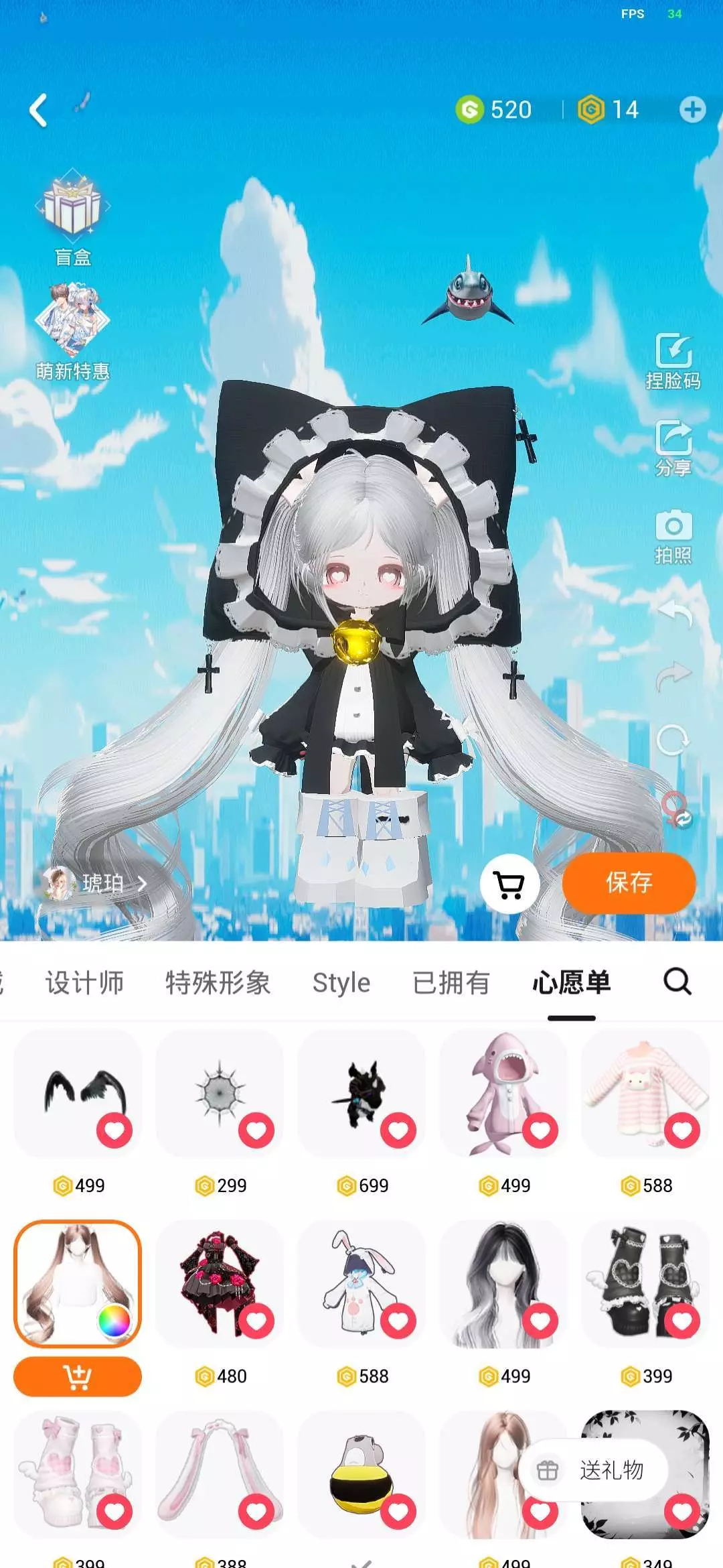 感谢音符老师送的头发 感谢奶牛色的小白咪送的鞋子