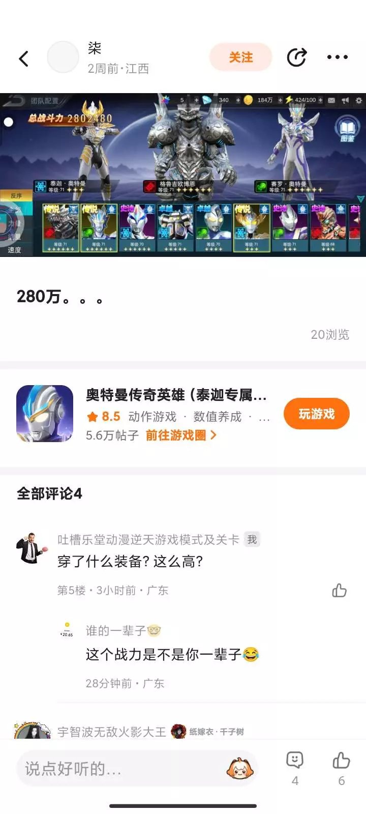 居然是战力,280万的大佬。胡八汉😂