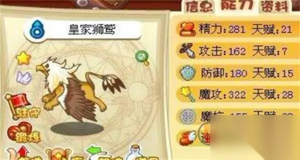 3、皇家狮鹫:皇家狮鹫的魔攻值远远高于攻击值,它的技能也都是很不错的。
