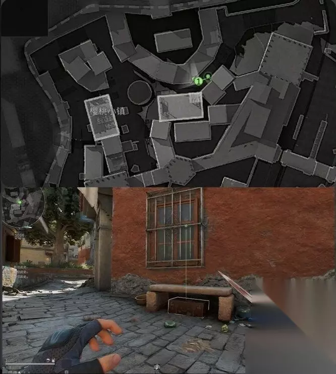 3. 樱桃小镇U型路内侧,路边的石板凳下方。