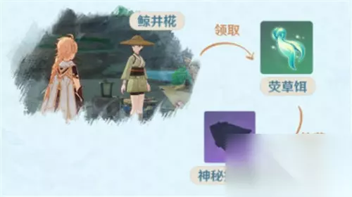 9月15日后,可以前往稻妻的鲸井椛NPC这里,领取【荧草饵】,这个鱼饵可以在鲸井椛重复领取。用需要注意的是,月光鳍要在【夜晚】这个特定时间段才能钓出来,也就是【18时-次日6时】这个时间段。