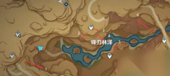 原神忧昙花位置介绍 一共有六个忧昙花,总览图如下。