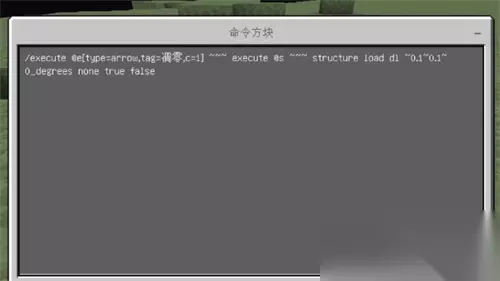 2、接着我们就需要打开控制台,把输入代码进去:【execute @e[type=arrow,tag=!sum]~~~structure load 蓝色凋零头 ^^^0.1】 3、我们在完成输入之后,回到页面上就可以看见刚才制作的普通弓箭已经变成了凋零弓了。