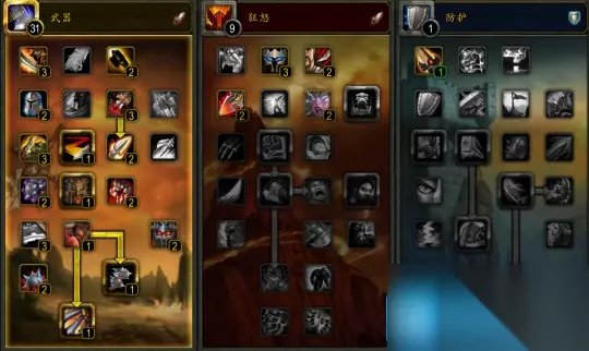 小编经常看到一种让我很无语的说法——大地的裂变的一大败笔是取消了天赋树。然而事实上,天赋树是在90级熊猫人资料片才被取消并改成了后来的3选1。在大地的裂变资料片中,天赋树依然存在,只不过进行了一定的改动。85级天赋树只有七行,而且各种天赋核心技能(例如武器战致死打击、狂暴战嗜血)被直接赠送,同时精简了像5%躲闪、5%暴击等纯数值类的过路天赋。此外,设计师还限制了天赋点法,要求玩家必须在主天赋投入31点(可点出最终天赋)后才能点副天赋。类似80级复仇战等非主流天赋从此销声匿迹。85级天赋树可以说是魔兽世界天赋树的最终形态。大幅精简旧天赋树是为了保证天赋树不会随着最高等级的提升而变得臃肿不堪,新版天赋树整体设计可谓相当出色,个人认为这是大地的裂变资料片的一个优点。此外,装备属性也进行了一定的改动。 大地的裂变资料片的装备属性改动引起了玩家的不满。暴雪的设计师针对玩家的护甲类型和天赋设定了每个天赋的“主要属性”,其中板甲坦克输出主要属性是力量,皮锁物理输出主要属性是敏捷,法系输出和治疗主要属性为智力。为了防止玩家跨甲换装,暴雪还为所有职业都添加了“护甲专精”技能,跨甲玩家将失去5%的主要属性加成。与主要属性相对应的是命中、精准、急速、暴击和精神等次要属性。大地的裂变资料片删除了“护甲穿透”和“防御等级”等次要属性,并添加了一个新的次要属性“精通”,其效果根据天赋不同而有所不同。