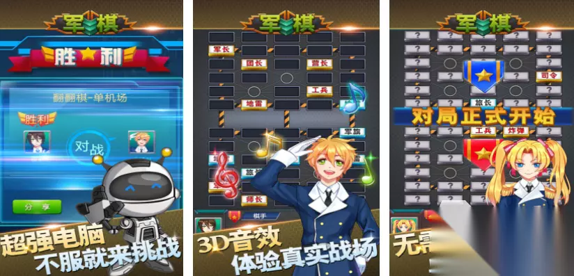 军旗会把军队设定成各种棋子,里面会有很多标志性的兵种,每个兵种都会有不同的克制种类,需要根据互相之间的克制,操控这些棋子,按照行兵规则不断去制衡对手,挑战过程中,可以只通过点击拖动,就改变当前的阵营和局势,玩家可以在挑战的过程中,不断去进行策略的调整,对战过程中会有三种难度可以选择,能在这个卡通战场中,感受真实的战场对战。 高速下载 普通下载 优先233乐园APP下载 2、《元游军棋》