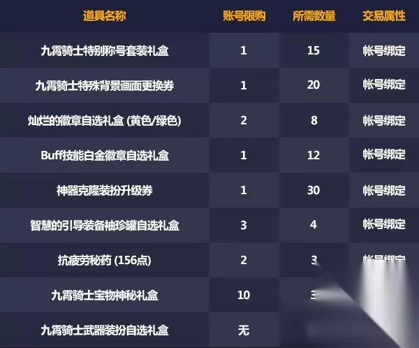 在背包中点击九霄骑士特殊背景画面更换券使用后,角色选择页面的背景画面将会变更为九霄骑士特殊背景画面。 :