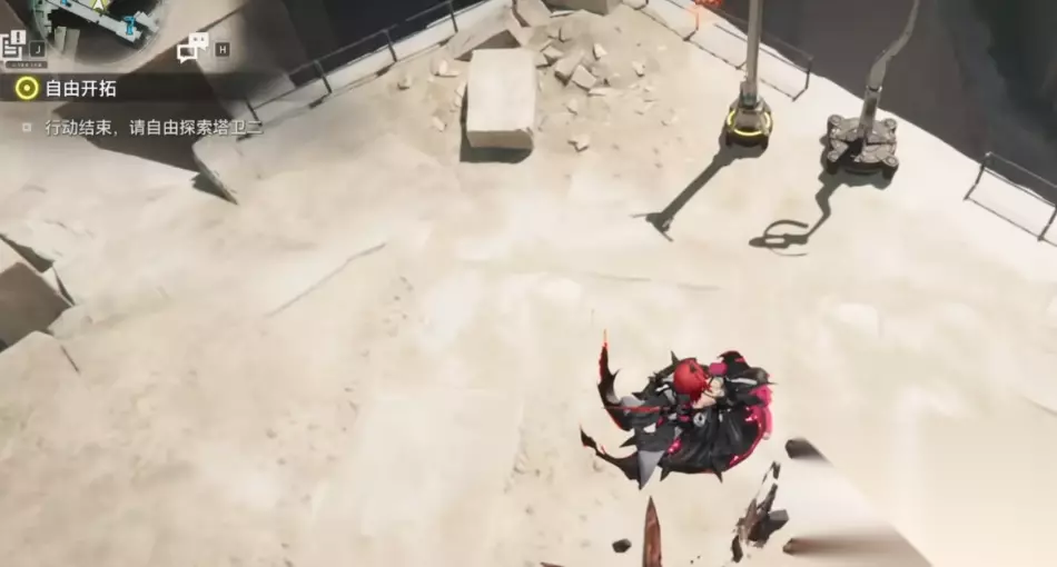 【协议20米】要求抵达采石场塔吊顶端平台。攀爬至最高点后,向右侧延伸平台跳跃并站稳。俯视下方空地处可见三至五名天使单位呈松散阵型聚集。起跳后保持水平前冲约1.2秒,再执行下劈攻击,可确保命中率超过90%。攻击判定范围以角色下坠轨迹中段为基准。