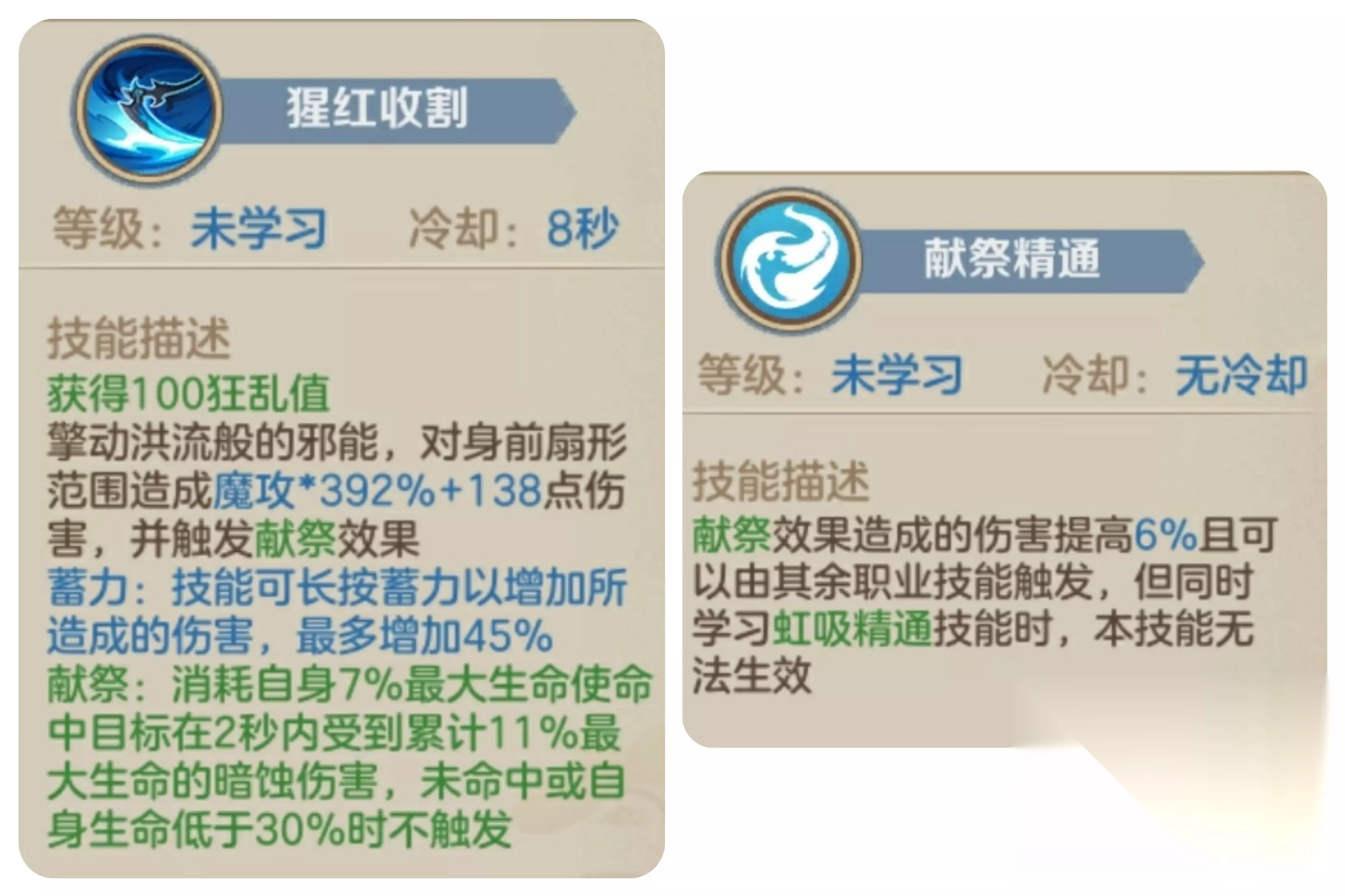 献祭的原理就是消耗自身7%最大生命换取命中对方在2秒内受到累计11%最大生命的暗蚀伤害(可以理解为流血伤害),未命中和生命低于30%不触发献祭效果,实战中这个献祭效果触发造成的暗蚀伤害可以叠加延长时间(血量30%以上一直命中对手的话)。 明白献祭流的高伤原理以后,我们就了解了献祭流的高爆发是建立在可以使用献祭效果的前提下,所以要最大化利用核心技能邪能爆发进入恶魔变身状态下的吸血效果弥补自身血量亏损延长献祭效果使用时间就是噬魂献祭流的核心玩法思路。 那么献祭流pvp打法思路就是追魂勾抓人+猩红收割+死亡天降(二段)+平A+邪能爆发(二段)+追魂勾黏着对手打。 邪能爆发的运用很重要,恶魔变身状态后所有伤害均附带吸血效果,伤害越高吸血越多,所以实战中大招死亡天降和邪能爆发是释放顺序要根据实战情况调整,如果狂乱值满了大招和邪能爆发都能使用,那必定是优先邪能爆发然后二段跳跃近身对手进入恶魔变身状态开大招死亡天降+平a+追魂勾,追魂勾cd短,能用就用,勾住对手跑不掉黏着打。 考虑精灵兽运用的情况打法套路就更灵活生动一点,先手不灭之火突进后,接着猩红收割蓄能尽可能的攻击对手本体、宠物和伙伴多个目标(暗蚀伤害可以同步触发多个目标)接追魂勾抓人+死亡天降+平A+邪能爆发打完一套再接剑豪和九尾狐穿插技能输出。 献祭流的pvp打法思路目前大致就是如此,自身的血量意味着高爆发,血量低于30%后就没有了献祭能力,所以恶魔变身的吸血状态对献祭流非常重要,因此恶魔变身后尽可能用高伤技能多输出吸血换取多一轮开启献祭输出的机会。 附上献祭流pve副本玩法加点: