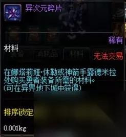 异界材料: 异界产出的异次元碎片、光辉魔石碎片也都可以用作制作普通催化剂的材料,异次元碎片在异界换装齐了之后,基本就没太多的用处,光辉魔石在经过改版后,也没有了太大的用处,在当前版本,很多活动都会赠送异次元碎片,多余的碎片怎么办?送制作器做史诗啊。