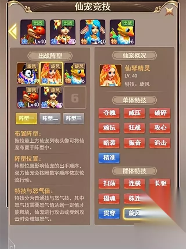 在决战之前,还是先要把你们的宝贝仙宠排好阵型。和幻兽天境一样,这里仙宠的排位,以及技能的选择至关重要!而问题的关键是我们面对的已经不是恒久不变的电脑,而是一个个会思考布局的仙友!成败与否,就在于你上阵什么仙宠,以及如何摆弄阵型和技能。