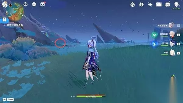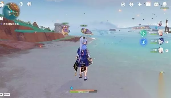 5、传送到「沃陆之邦」图腾柱北方的传送锚点,直接向后转,直走,海边有一个石柱,石柱旁边就是一个限时挑战,完成挑战获得三个精致的宝箱 挑战内容:在180秒内收集120个火之微粒