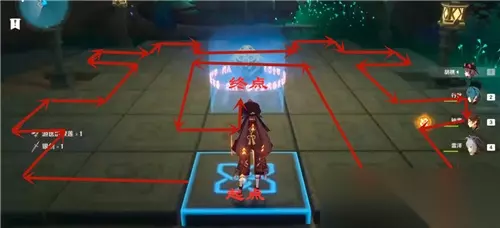 启动之后往前走,会看到第二个方块迷阵解密关卡,走法顺序如下图所示。