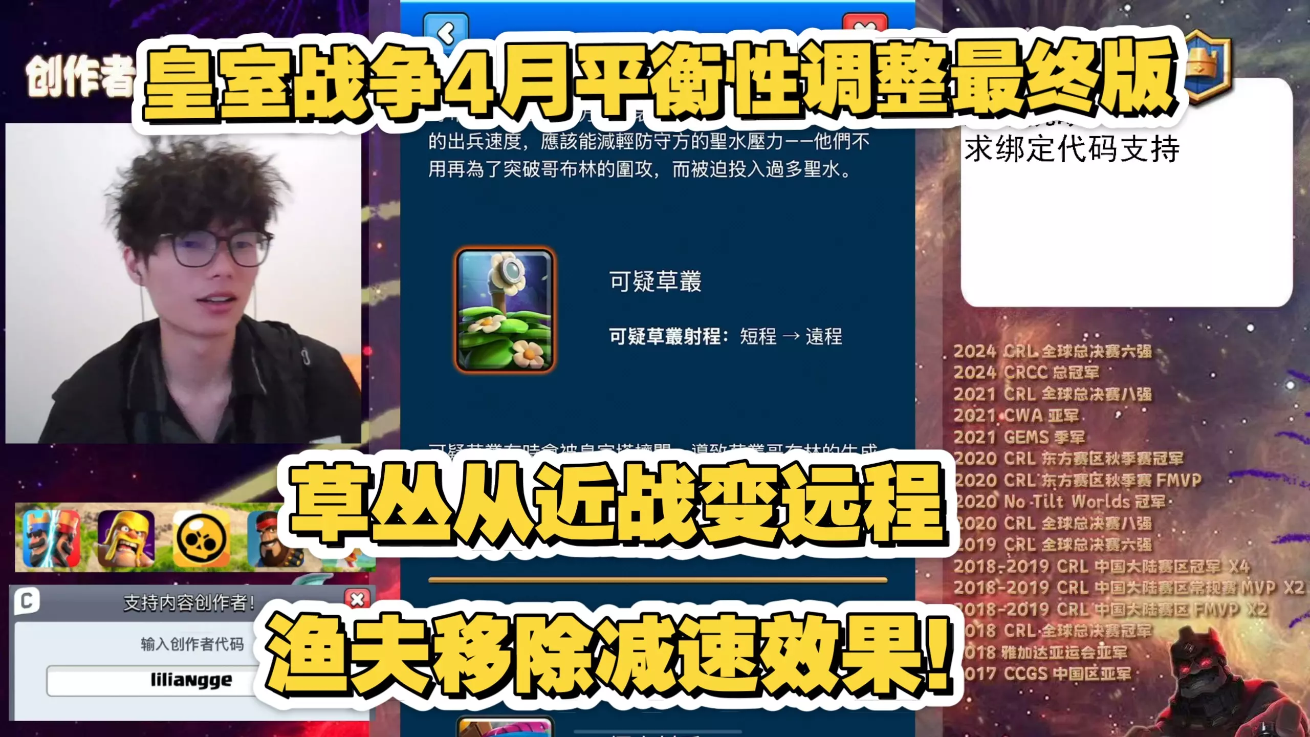 皇室战争4月平衡性调整力量哥 力量哥直播间:HY950827 力量哥创作者代码:liliangge