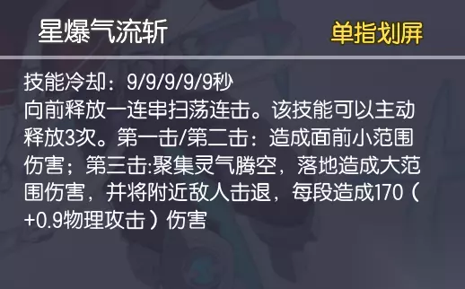 英雄定位:近战物理型 操作难度:三星 英雄技能 星爆气流斩