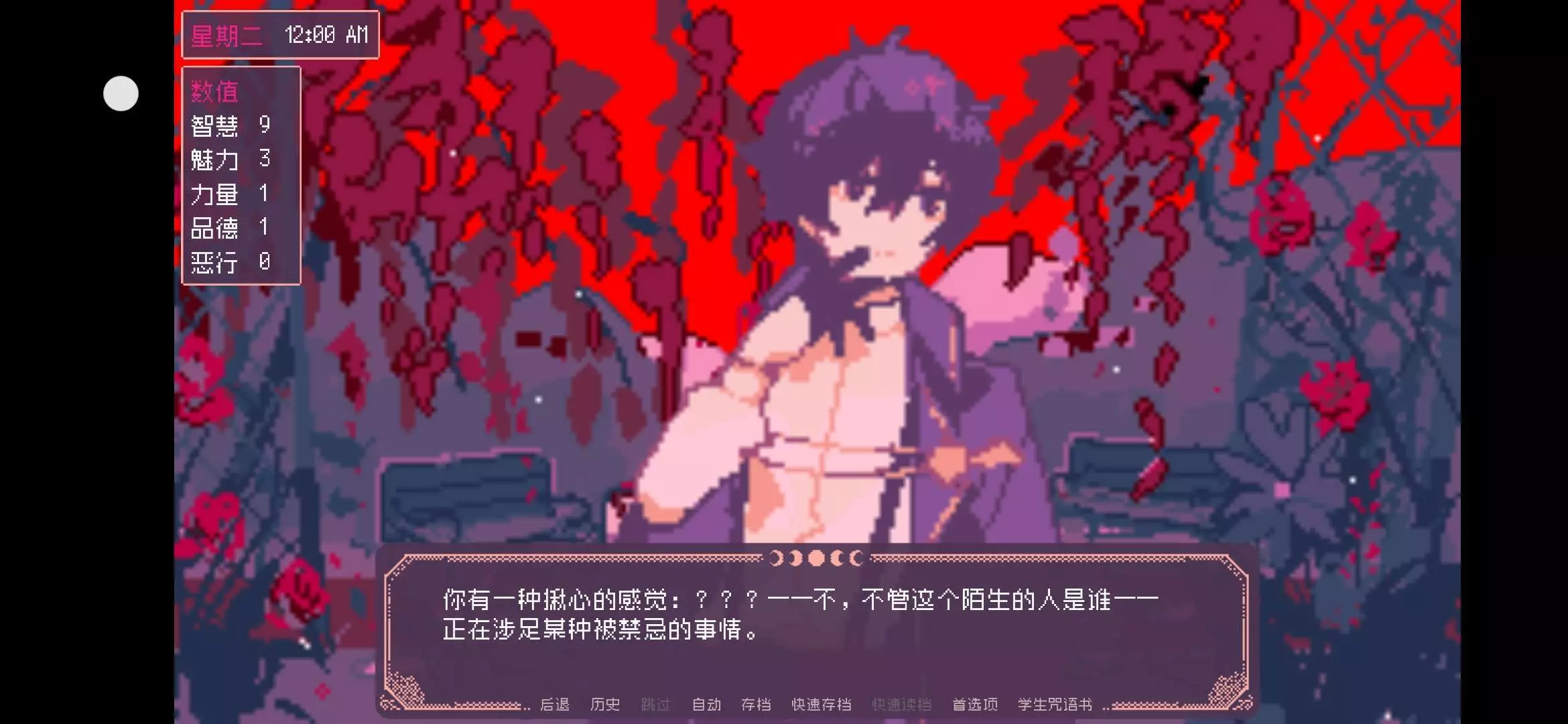 这是什么剧情啊,从来没见过,明明上一次选的也是同样的课和宿舍还有攻略对象,这次怎么第一天晚上时间突然变长了,然后就出现这个画面了,怎么选都是s😥