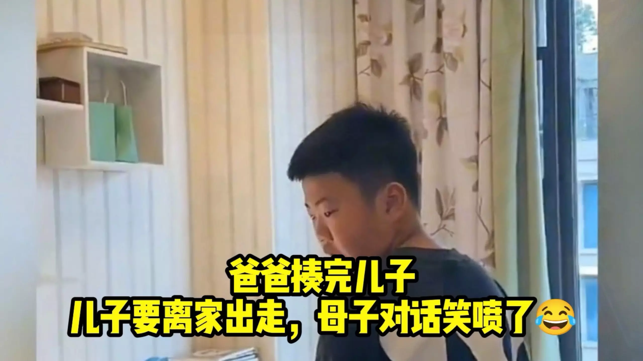 这是一则搞笑视频,视频里小男孩闹脾气说不喜欢爸爸,要离家出走,出门后还和爸爸道别,这一幕让爸爸笑疯,十分有趣。