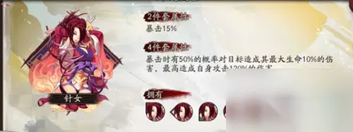 方案三:针女,速度、攻击、爆伤 极限爆发的一波流打法,打极限爆发的御魂配置,斗技输出更不看脸,但是爆发没有轮入道御魂来得高,但好处在于稳定,PVE用起来也不错