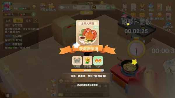 一、菜谱介绍 在摩尔庄园手游中水煮大闸蟹的制作需要1只大闸蟹和1朵向日葵。 选取好食材后加入相应材料,在食材选择选择一只大闸蟹作为主材料,然后再加入向日葵食材一朵,右上角火力选择中火,然后在按下开始选项就可以成功做出水煮大闸蟹了。