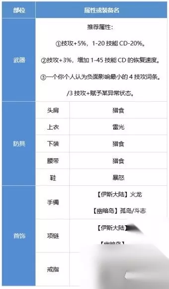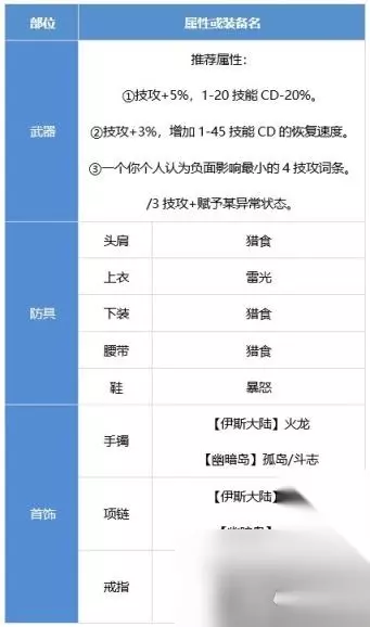 补充:静谧之像和无色冰晶耳环作为上版本的毕业装备,这版本虽然被大幅削弱,但对风法而言在固定SS里还是有一定强度,依旧可以作为过渡用史诗进行使用。在以上固定SS搭配里也可作为替换件。 首饰贴膜可火火黑(CD)也可天天黑(纯伤害)。 使用其他棍棒的风法也适用。 武器词条CP建议选择双CD(1-20CD、1-45CD)词条,第三个词条选择高技攻词条或者带异常赋予的词条。非CP武器词条选择根据个人情况选技攻较高的词条或异常赋予词条即可。 二、毕业向装备搭配 前言:风法是一个很吃CD与三速的职业。 尤其是佩戴CP棍棒的风法,既需要一定的CD装来保证续航,又需要保证装备有一定的三速量(三速过低会极其影响风法的手感与技能的倾泻速度)。 故在考虑风法配装时需要进行自我权衡,将配装的伤害、CD与三速把控在自己能够接受的一个度上。 当然,每个人的感觉是不一样的,像同样的攻速,有的人觉得卡手玩起来不得劲,有的人觉得速度适中不容易冲歪;同样的CD,有的人觉得不够用,有的人会觉得很适合他的攻击节奏。最终搭配选择都要取决于操作者本人。 【武器方面】 风法由于武器精通只能佩戴棍棒。 因为神界版本风法CP武器加强,所以现版本依旧首推CP武器。 不建议佩戴其他棍棒,除非你特别不喜欢CP武器,且不在意强度差距。 【无色冰晶耳环/静谧之像神界现状】 无色冰晶耳环:可作为没装备时期过渡用的CD件,无法作为毕业装。需要去追求深潜耳环。 静谧之像:相较于上版本,伤害上限被砍但是同时需要的操作量也减少了,结合CD强度尚可对标3.5词条的深潜右槽。【纯伤害对比对标3词条深潜右槽】 【方案一】直伤流