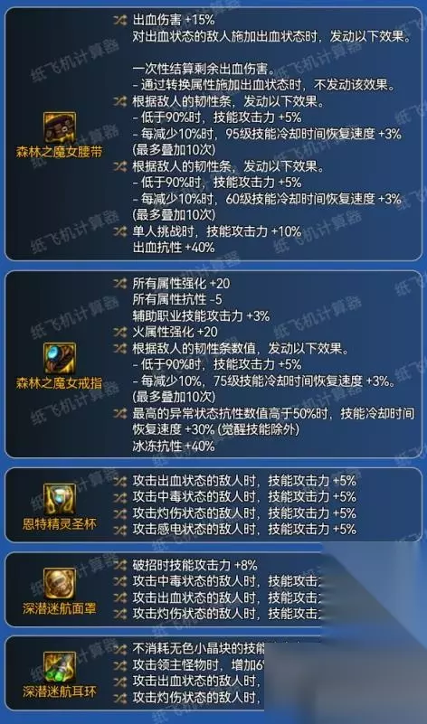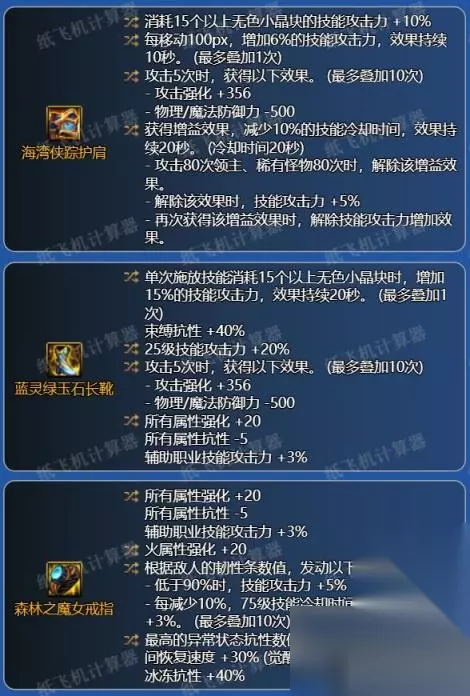 补充:深潜攻速在风法这边优点并不算多,一是直伤,二是三速高,手感佳。但缺点很明显:伤害相比异常流比较一般,深潜手镯在其他职业里的比较强势的词条:无色技能+10技攻,在风法这收益很一般难以作为毕业词条。海贼戒指也是加强无色类技能导致风法这套的自定义毕业戒指为魔女戒。需注意,魔女戒指的触发难度较高,要么需调整时装属性以及更换徽章来触发,这会导致角色攻速的降低,需要玩家注意找补。要么亏词条让自定义本身可以凑满异常抗性。同时,攻速鞋触发也相对艰难,请自行注意。 *不建议特地去追求这一套,除非深渊恰好爆了个4词条手镯。 幽暗岛贴膜建议优先做特殊三件套。 同为直伤,海贼小技能虽然没有攻速鞋限制,但魔女戒指的硬性要求依旧无法避免。同样的,手镯也比较难洗。强度比深潜攻速强但操作量会略微多一点(因为伤害分布更为倾向小技能)