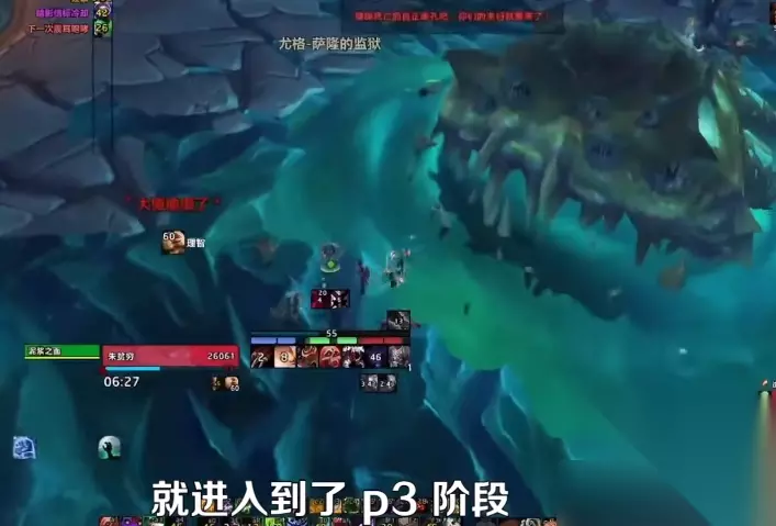 首先我们要明白尤克萨隆有3个阶段,p1阶段BOSS化身为萨拉站在场地的正中间,他被毒云环绕,玩家都不能踩毒云。因为彩云会召唤出来更多的小怪,注意此阶段玩家无法直接攻击BOSS。第一阶段BOSS一共有3个技能,1萨拉之怒,对小怪释放增加伤害,2萨拉的祝福,随机玩家上一个dot持续掉血,3萨拉的狂热,增加随机玩家20%的伤害,同时增加受到的伤害200%。 第一阶段场上会不停的刷新尤格萨隆卫士,卫士一共有两个技能,一黑暗渐雨,对35码范围内的所有人,造成1万的暗影伤害,并附带减治疗效果,可以被打断。二暗影爆裂,死亡时会爆炸,对周围小范围内造成22.5万的暗影伤害,注意小怪死亡的这个爆炸呢可以炸到BOSS,P1阶段只能通过这种方式使BOSS掉血,总共炸8次进入到P2阶段。第一阶段普通难度有一种更简单的打法,就是全团站在BOSS脚下集合,因为4守护的buff,小怪爆炸可以靠治疗刷,这样的话可以减少团队跑位,不容易出现踩足云的add的情况。