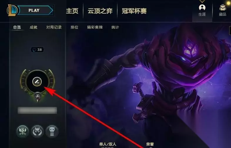 lol取消勋章佩戴方法 打开客户端,点击菜单栏中的【生涯】。