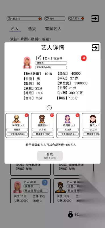 玩家需从海量剧本中筛选出最具市场潜力的作品,这一环节考验着玩家的商业嗅觉与艺术鉴赏力。紧接着,组建一支高效且富有创造力的演员团队成为关键,每位演员的个性与情绪都将直接影响拍摄进度与作品质量。此外,玩家还需精心筹备各类拍摄道具,确保每一场景都能完美呈现。 高速下载 普通下载 4、《明星梦工厂》