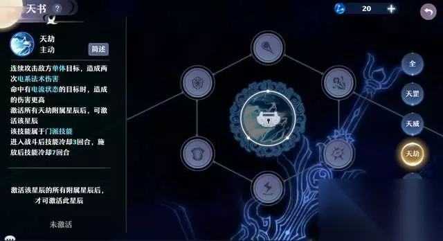 天罚同时攻击敌方九宫格内的所有目标,造成电系法术伤害且扣除施法者等级*3的法力,同时施加3回合天罚状态(每回合末损失施法者等级*1.5的法力值)。天劫连续攻击敌方单体目标,造成2次电系法术伤害,命中有电流状态的目标伤害更高。 青云本身AOE伤害技能就比较多,大招也有减蓝的效果,所以天罚的优先级并没有那么高。天劫集火效果比较好,尤其是配合剑引苍龙,相当于物理门派的四刀,所以行者比较推荐天劫(主PVP玩家也可以选择天罚)。