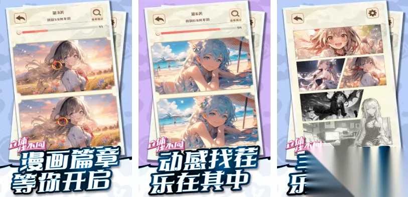 幸运找不同这个操作经典的单机版本竖屏找茬手游可玩性极高,你要在各种主题的图片中寻找到细微的不同之处,极其考验眼力和耐心的游戏机制让许多玩家趋之若鹜,而随着一个个关卡的不断推进图片上的细节更加丰富,越来越有挑战性的内容也会让众多找茬高手乐在其中,简约画面和轻松的音乐足以让大家获得轻松惬意的感觉。 高速下载 普通下载 优先233乐园APP下载 5、《立体找不同》