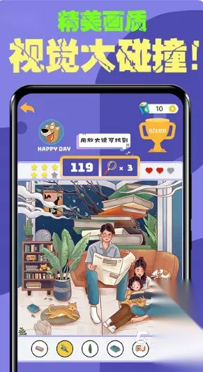 这是一款匠心独运的休闲益智游戏,它以卡通画风勾勒出一个又一个趣味横生的场景,等待着玩家的慧眼去发现其中的微妙差异。每一关都是一次眼力与智慧的碰撞,时间滴答作响,挑战着玩家的极限。在这里,玩家不仅能享受到寻找的乐趣,更能悄然间提升观察力,让心灵在细微之处找到宁静与满足。一起找寻那些被忽略的美好,让快乐在指尖绽放。 高速下载 普通下载 优先233乐园APP下载 5、《大家来找茬》